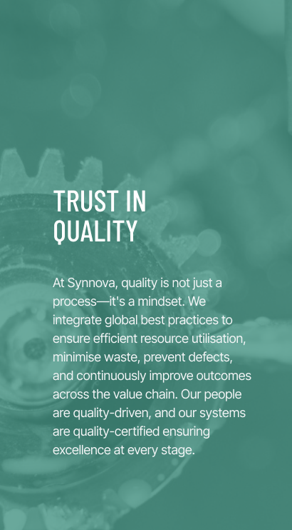 Innovation is second nature at Synnova. With our Value Engineering & Value Analysis (VEVA) approach, we reimagine every product detail – improving performance, simplifying processes, and reducing cost. These insights come built into our pre-sales support, so you get leaner and smarter solutions from the start.