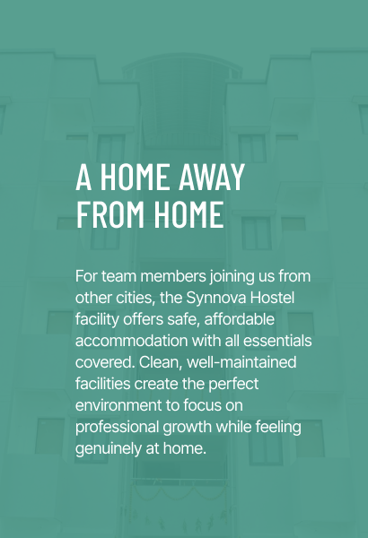 Members joining us from other cities, the Synnova Hostel facility offers safe, affordable accommodation with all essentials covered. Clean, well-maintained facilities create the perfect environment to focus on professional growth while feeling genuinely at home.